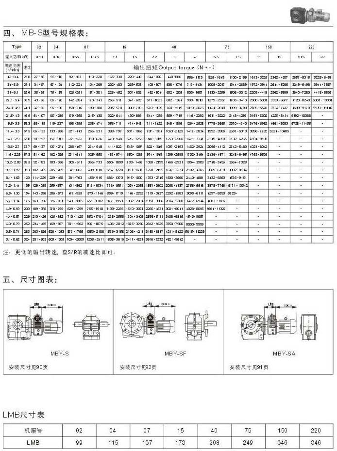 MB-S型號(hào)規(guī)格表尺寸圖表LMB尺寸表